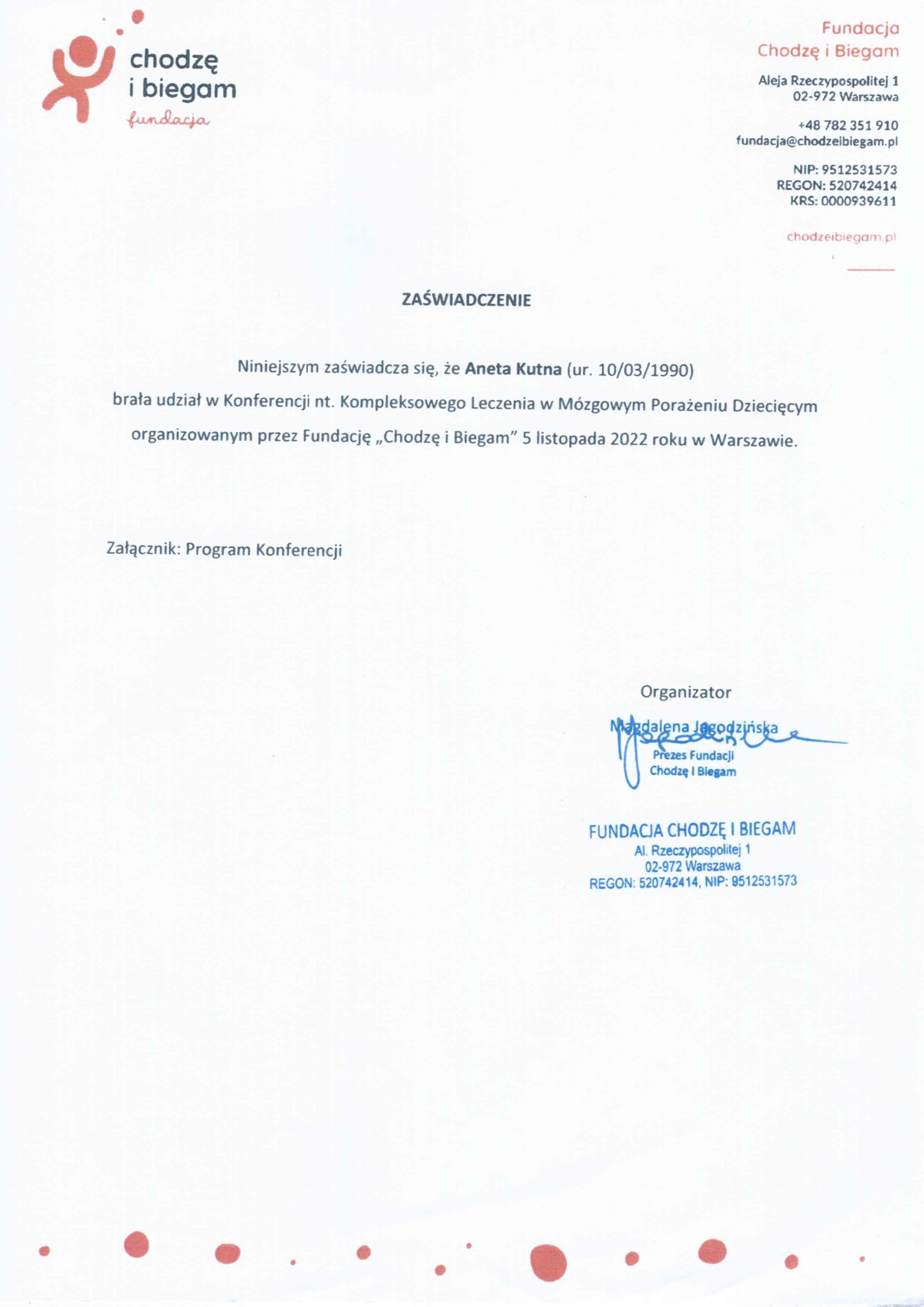 - Kurs specjalizacyjny ,,Fizjoterapia u dzieci ryzyka”,