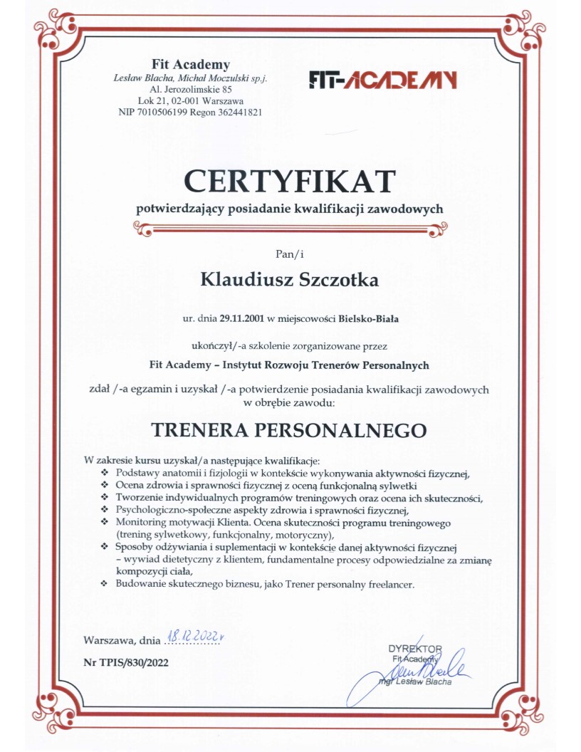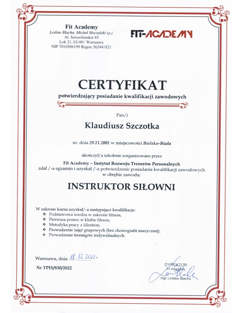 • Trener personalny