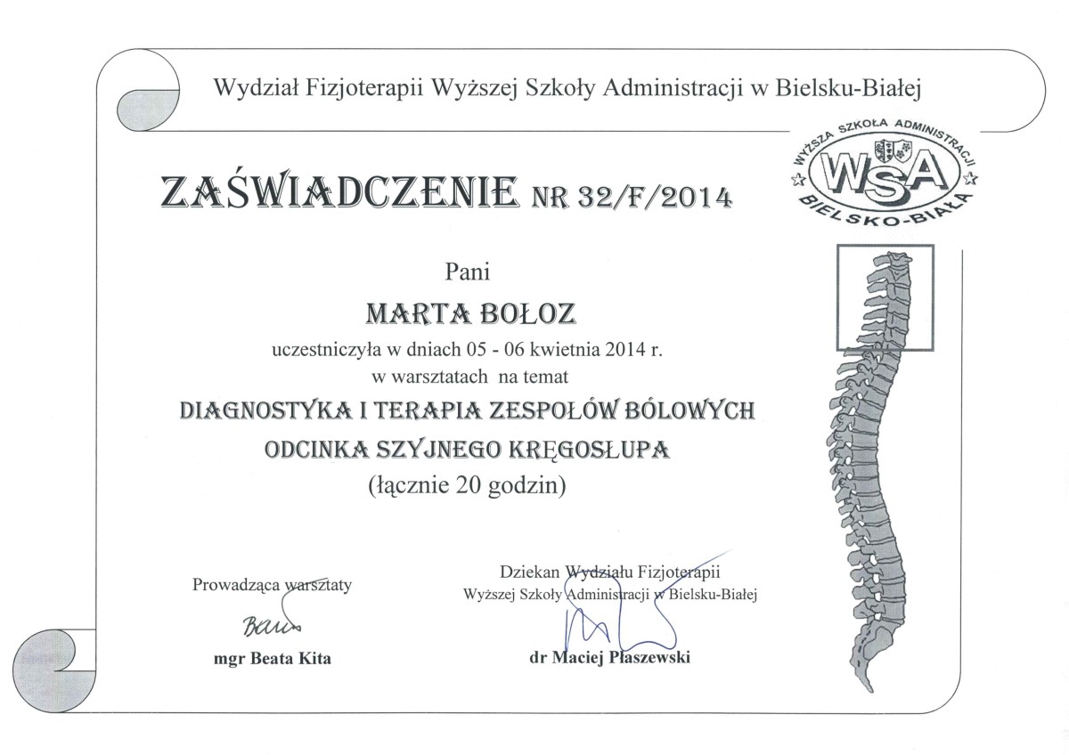 - „Diagnostyka i terapia zespołów bólowych odcinka szyjnego kręgosłupa”