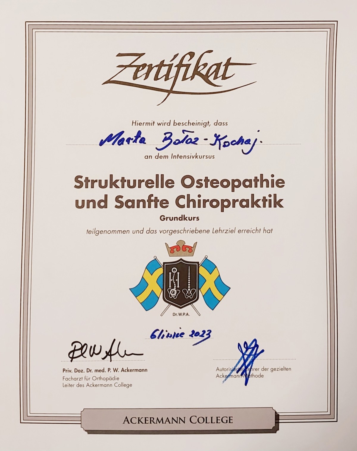- Osteopatia strukturalna i chiropraktyka - metoda dr Ackermanna (moduł I, II)